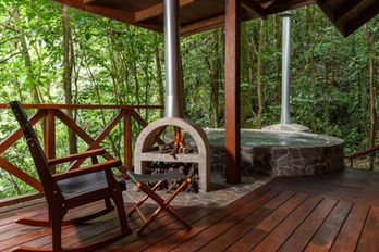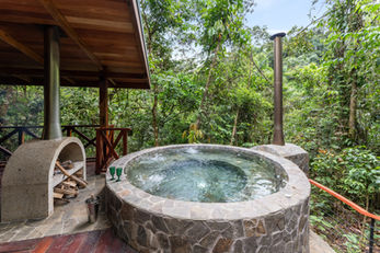 Part of the Rancho Celeste Estate, these casitas serve as a private multi-family retreat, sitting in silence and awe amidst the rainforest. Designed as a sanctuary for connection and rest, the architecture allows the gentle hush of the river below to do its work, while guests are lulled into evenings spent by the fireplace and the warmth of the wood-fire heated pools