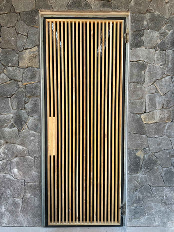 Hilltop lofty tropical modern, artisan work, exposed concrete, steel, stone and teak.